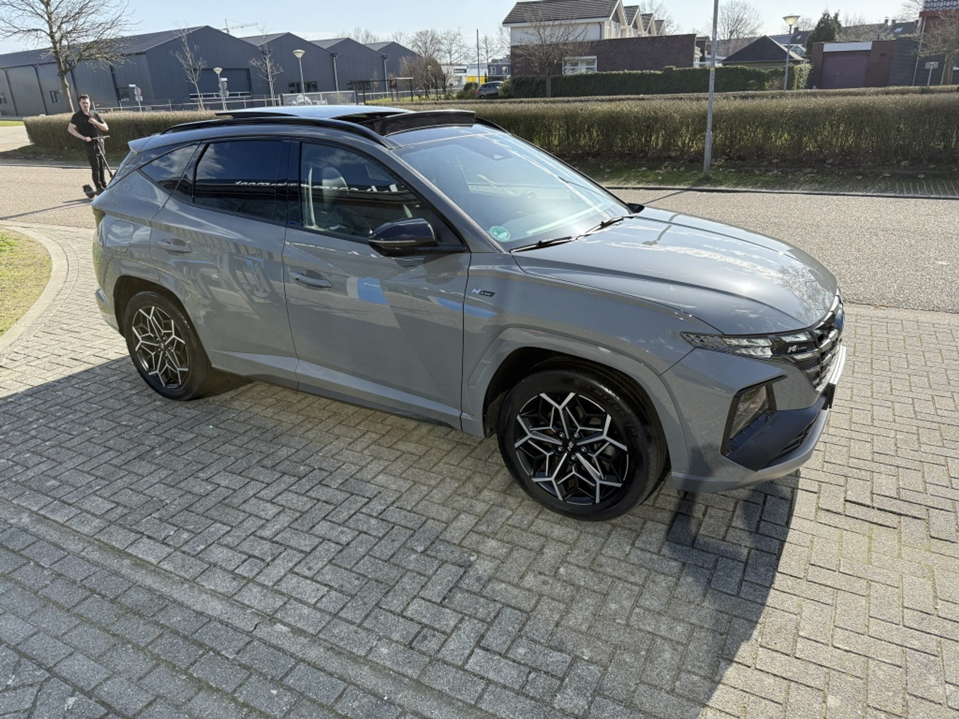 De Hyundai Tucson 1.6 T-GDI PHEV Premium Sky in de meest gewilde kleur!!! is een indrukwekkende SUV die uitblinkt in zowel prestaties als comfort. Met een hybride benzine aandrijving en een vermogen van maar liefst 265 PK, staat deze auto garant voor een dynamische rijervaring. De grijze kleur en metallic lak van de carrosserie geven de Tucson een moderne en stijlvolle uitstraling die zeker niet onopgemerkt zal blijven.